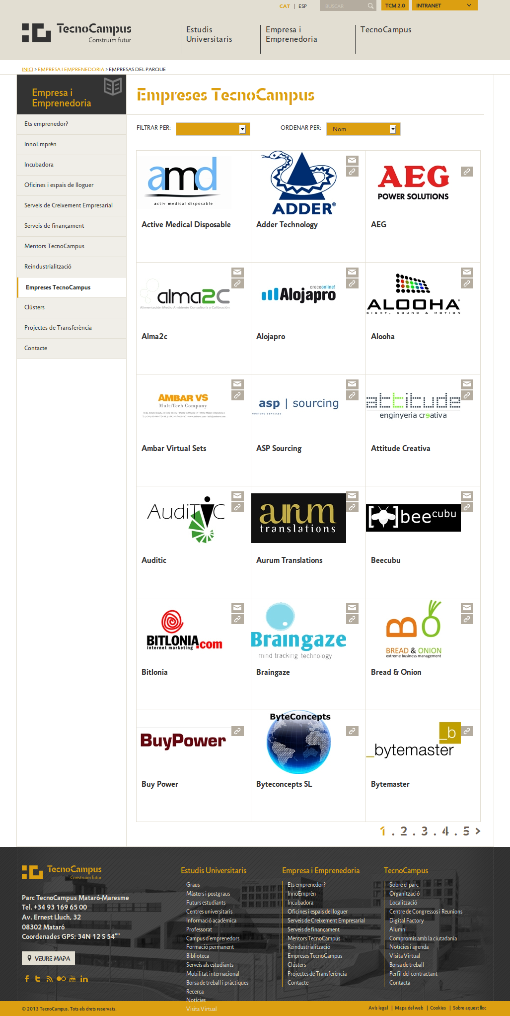 Creamos la web de Tecnocampus, centro universitario de Mataró especializada en tecnología, innovación e internacionalización.